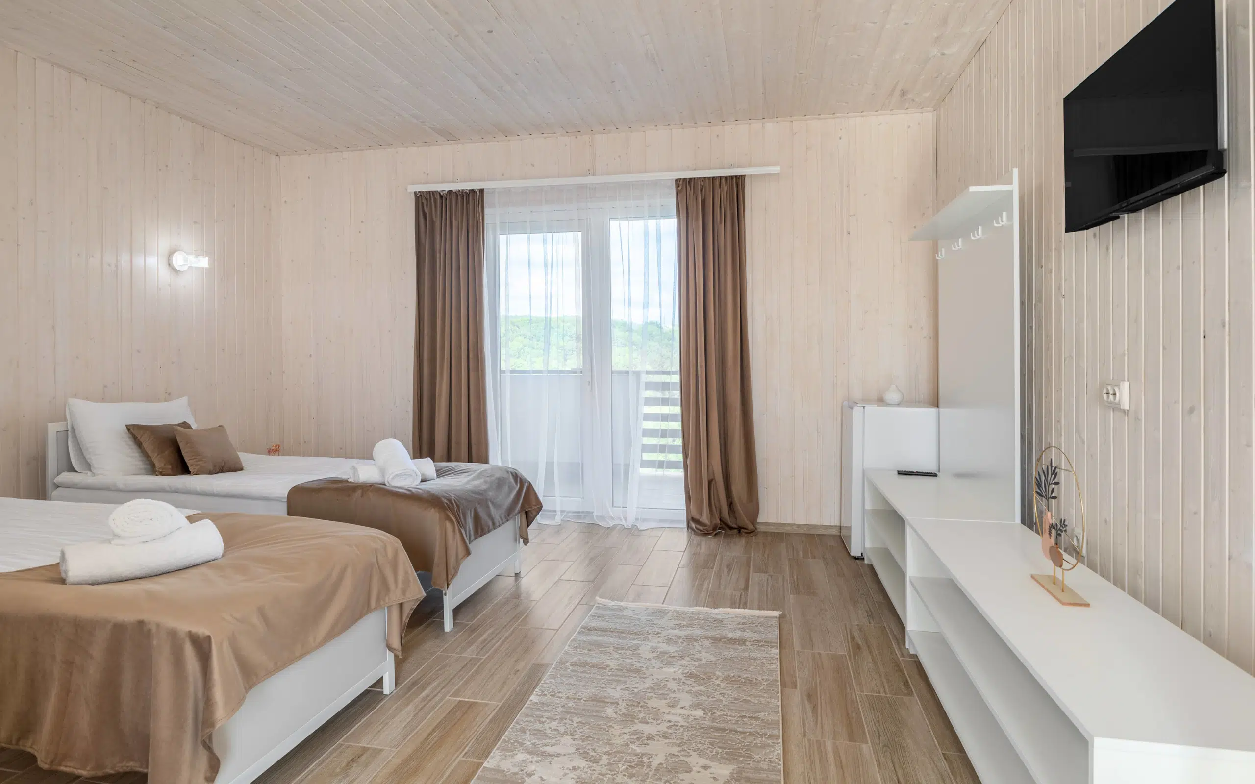Пропонуються різні категорії номерів — від стандартних до просторих люксів: